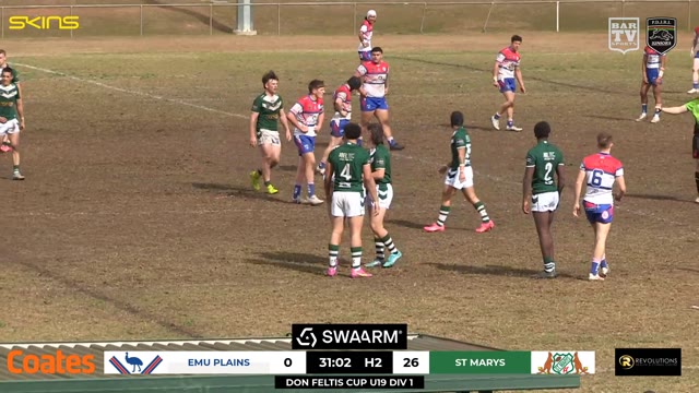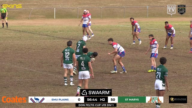 MATCH CENTRE: Penrith & District Junior Rugby League Round 15 - Don Feltis Cup U19 Div 1 - Emu Plains v St Marys
